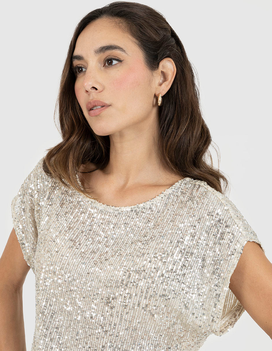 Blusa de manga corta con detalle en cuello (disponible en negra y beige)