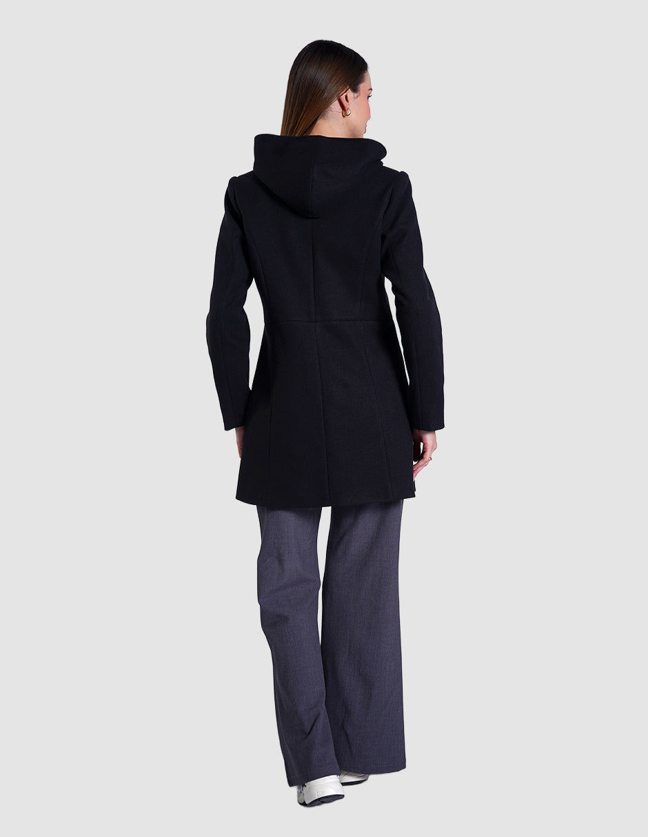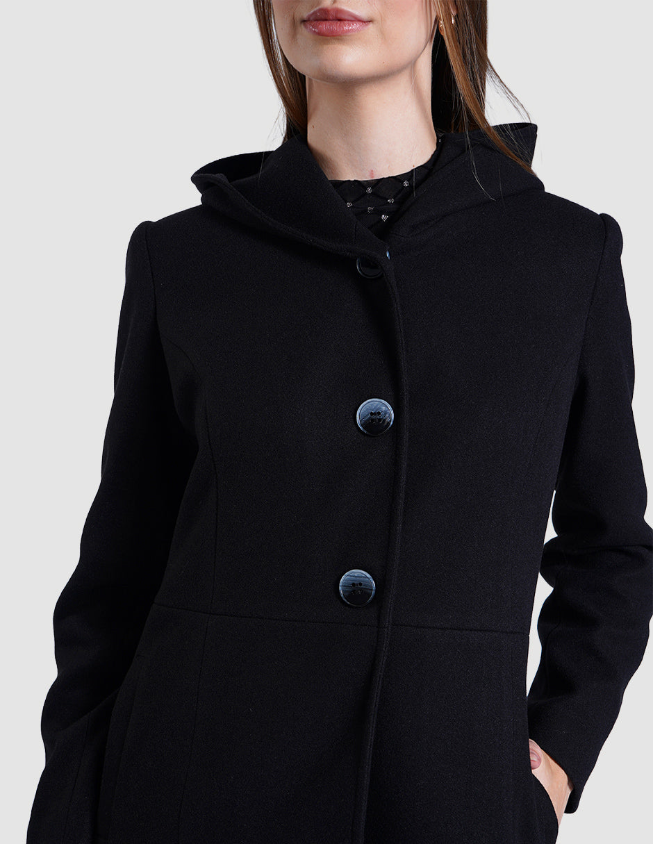 Uno de los detalles que más nos gusta de nuestro abrigo negro largo, es la capucha, que es ideal en esta época de Otoño-Invierno.