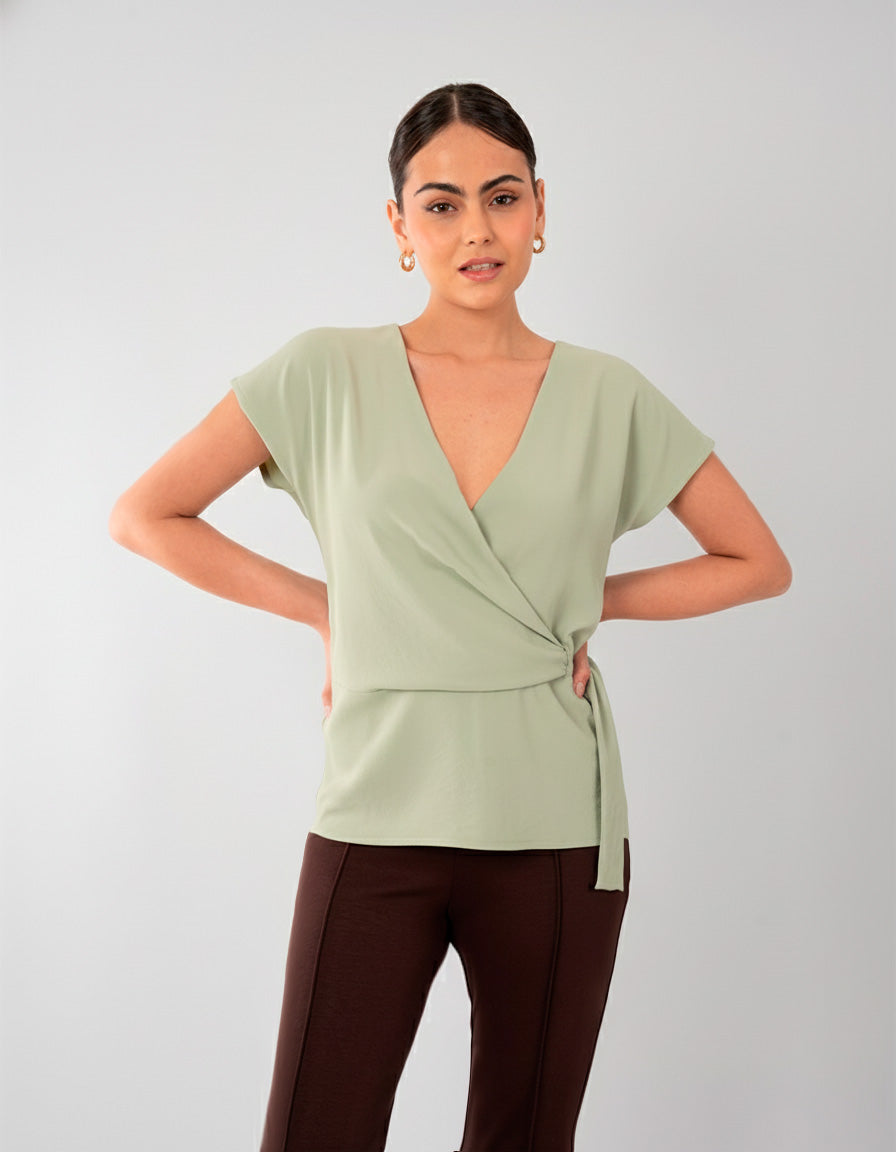 Nuestra blusa verde agua con cinta, luce increíble con un pantalón de vestir, shorts, y/o tus jeans favoritos.