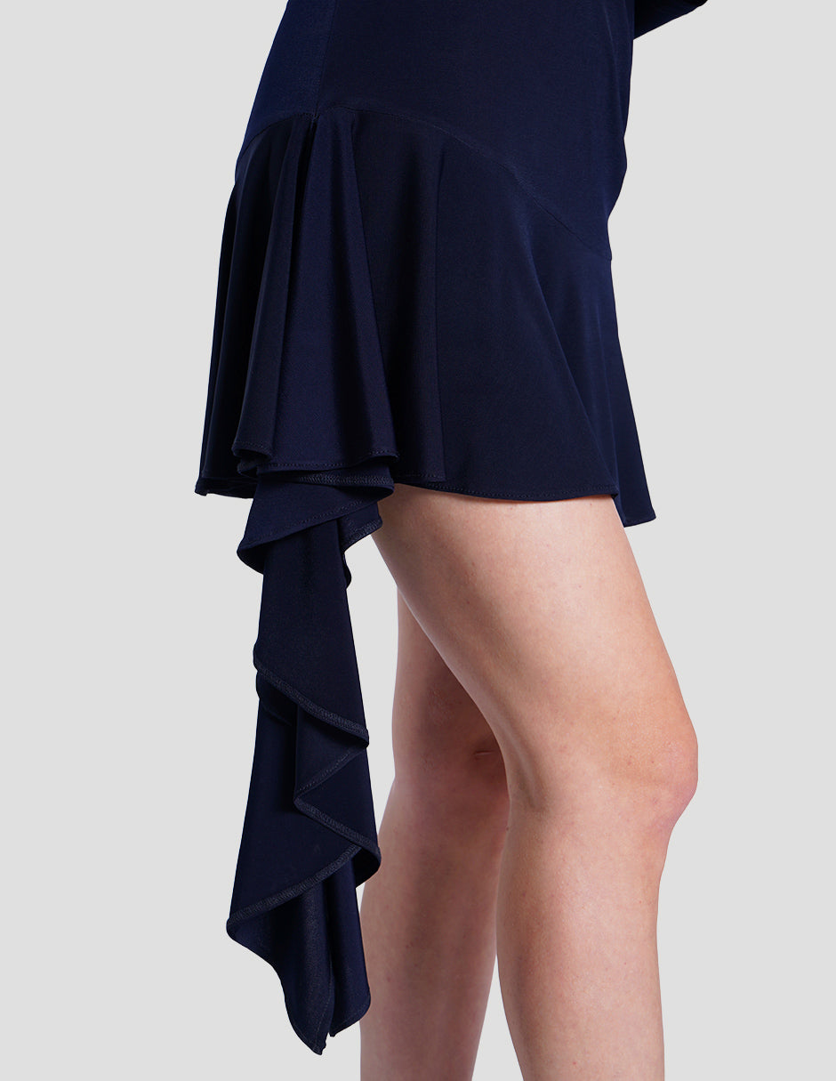 Uno de los detalles que más nos gusta de nuestro vestido azul marino, es el diseño de fruncido lateral, que le da un toque muy femenino y original a nuestra prenda.