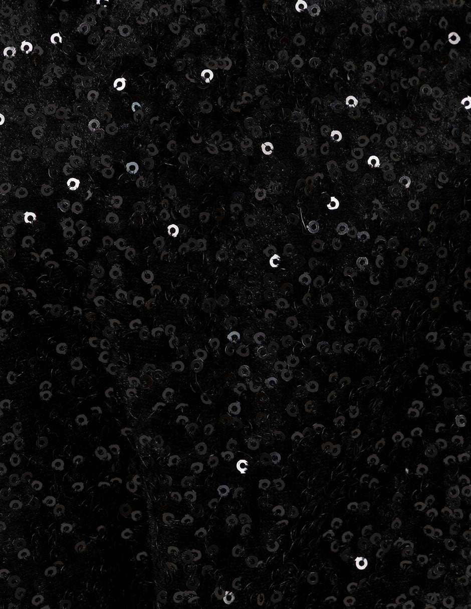 Uno de los detalles que más nos gusta de nuestro vestido corto negro de lentejuelas, es el escote en la espalda, lo que le da un toque femenino a nuestra prenda.